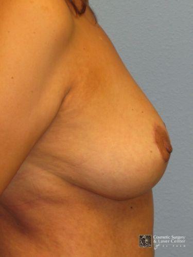 Description: Over 7 months ago, this patient had a breast reduction, tummy tuck with liposuction and fat transfer to the buttocks. She healed rapidly and was quickly back to work. She was a DD cup size and is now full C/small D cup. She has been taking excellent care of herself with exercise and good eating habits and is excited to report that she has gone from a 12-14 dress size to a size 6. Her follow up photos are 7 months following her procedure.